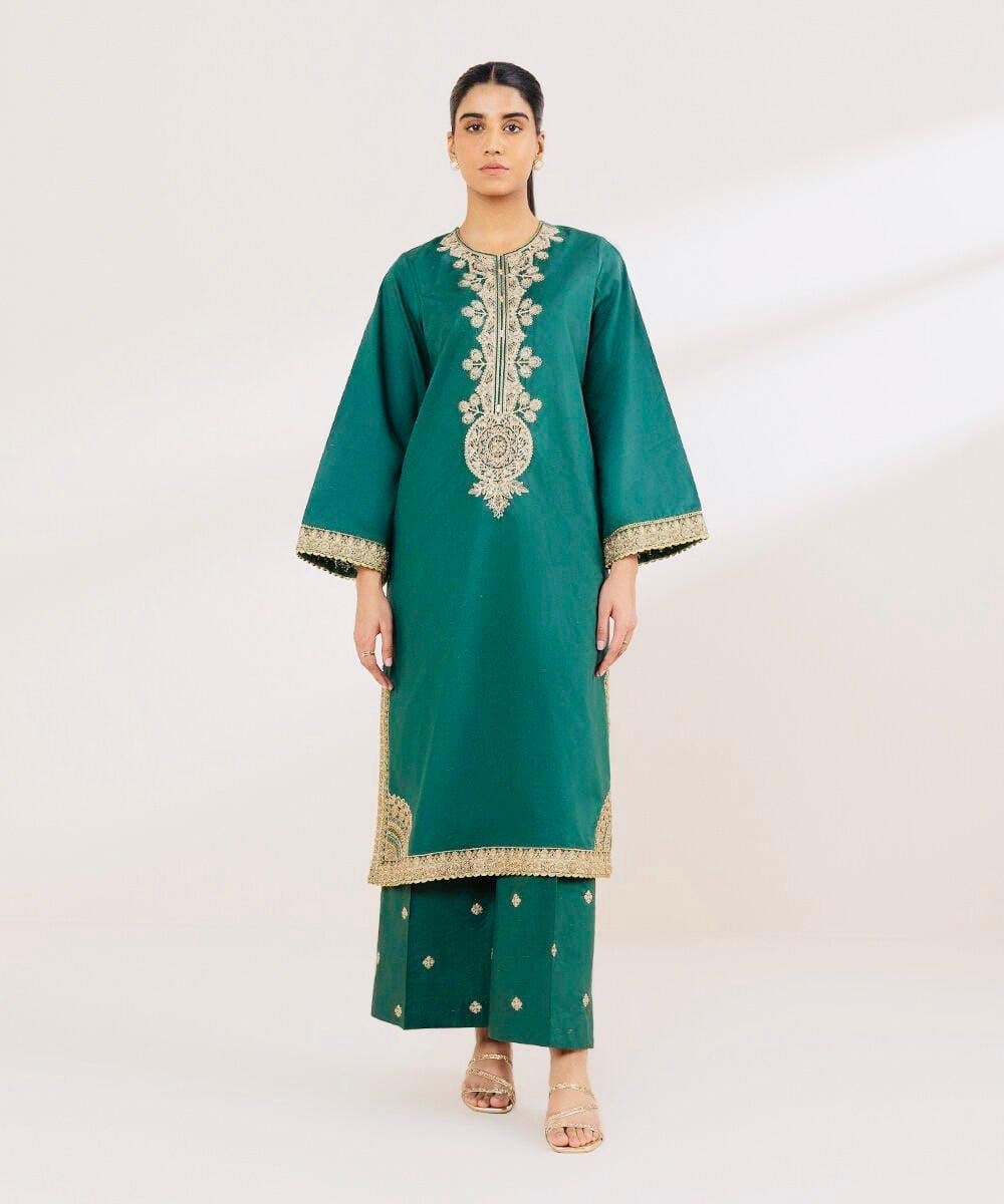The Embroidered Crosshatch Suit with Manaar Dupatta is a symbol of modern grace blended with traditional embroidery. Designed for women who appreciate fine craftsmanship, this outfit brings elegance to both casual and semi-formal occasions. The premium crosshatch fabric ensures durability and a crisp finish, while the delicate embroidery enhances the overall appeal.
